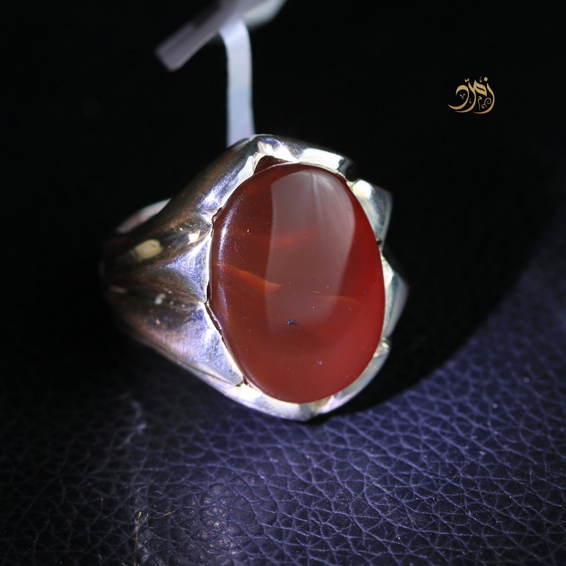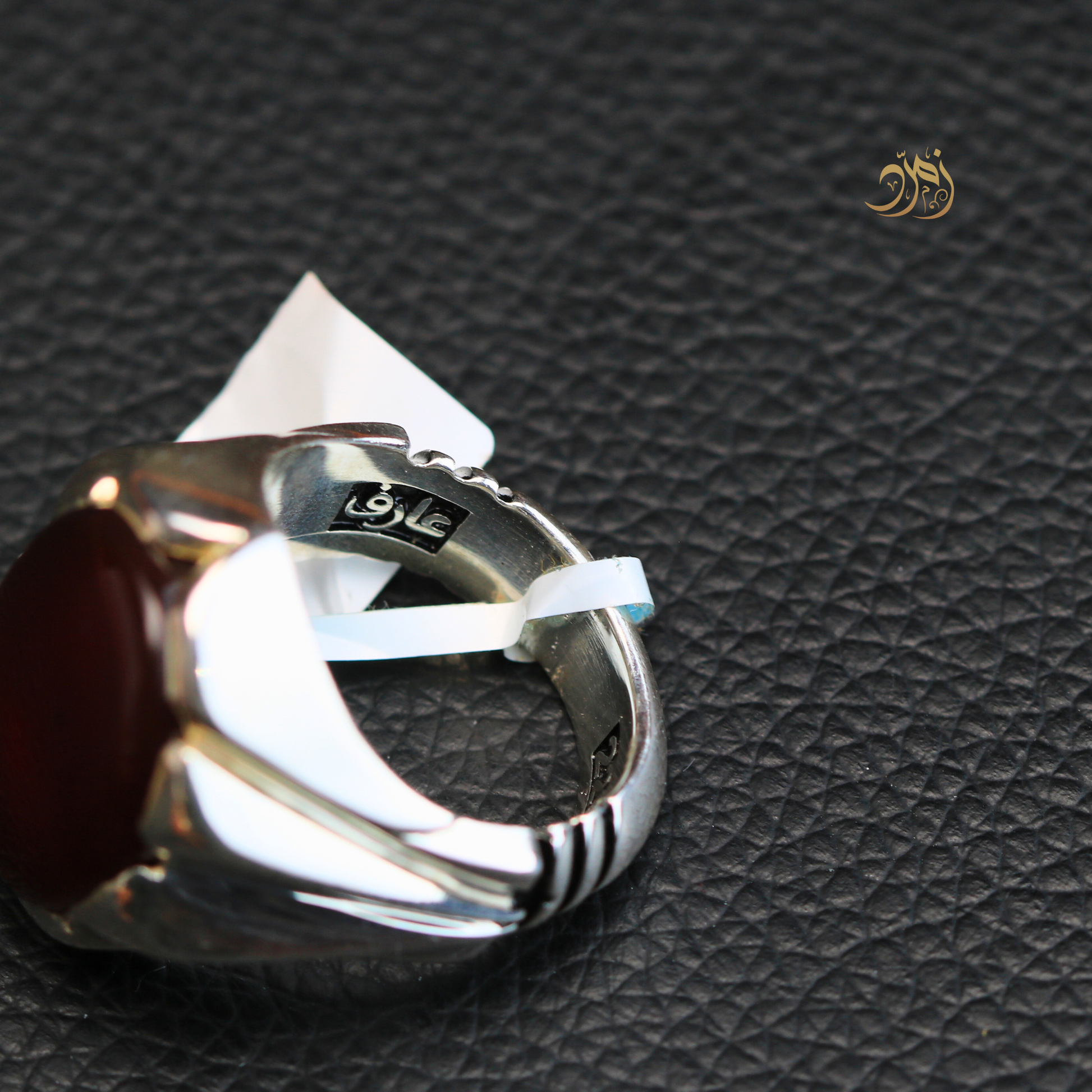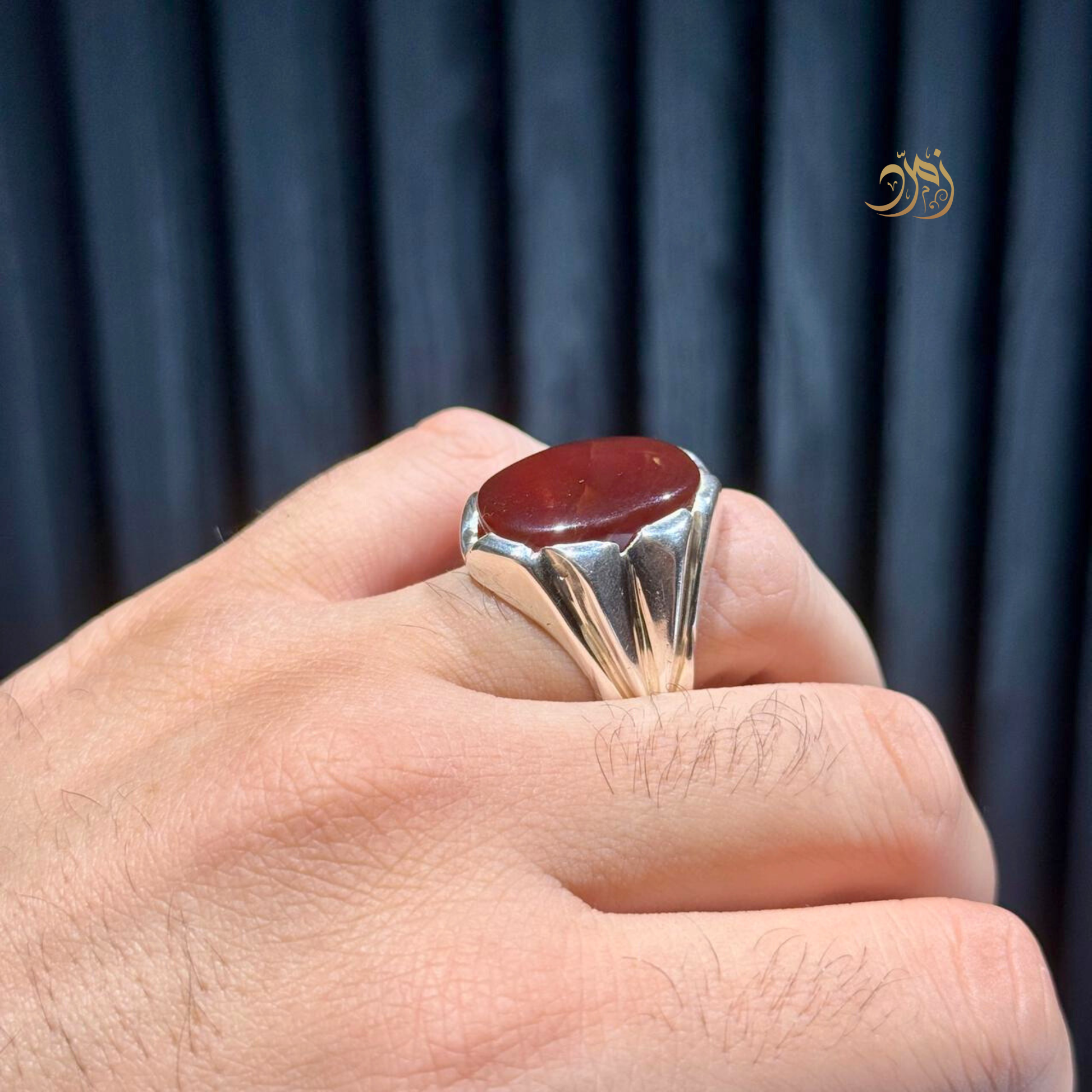 خاتم عقيق يماني كبدي طبيعي صياغة عارف