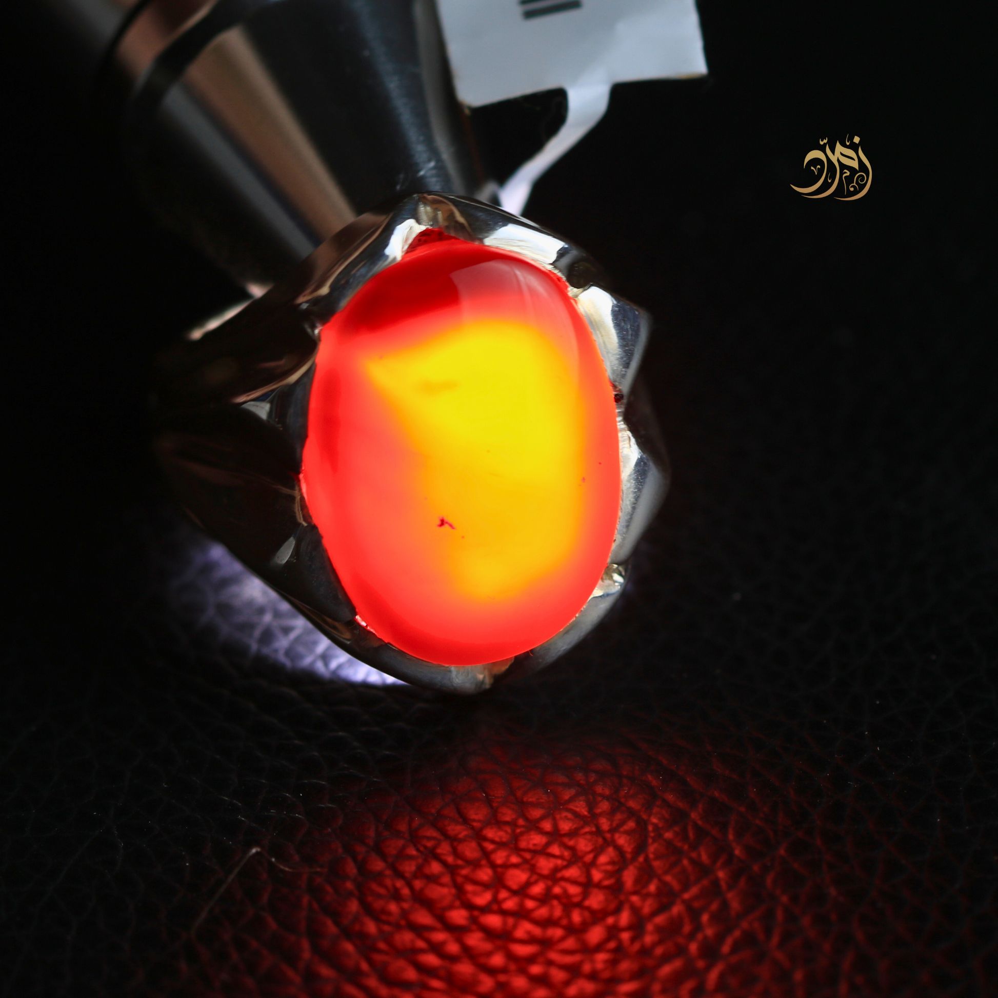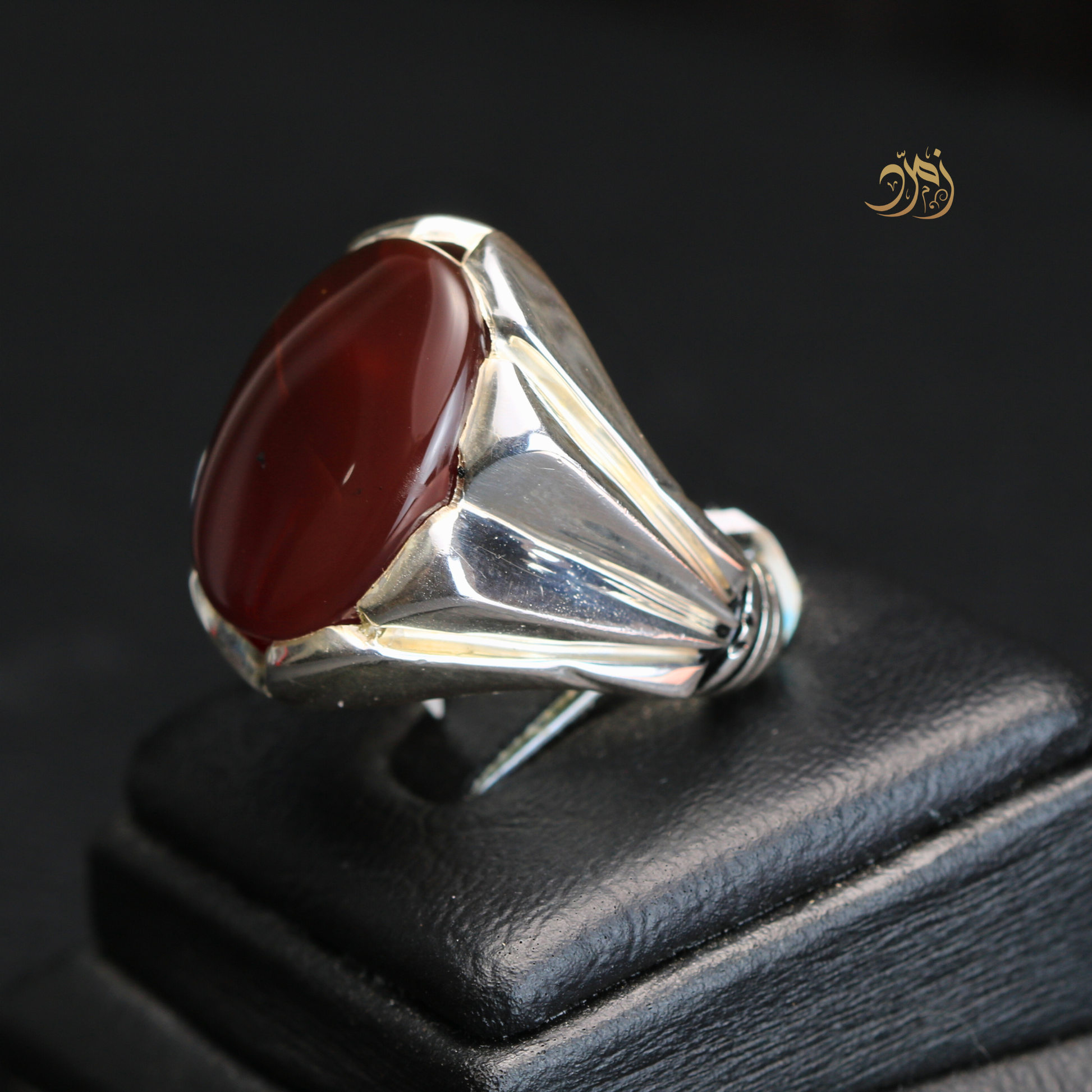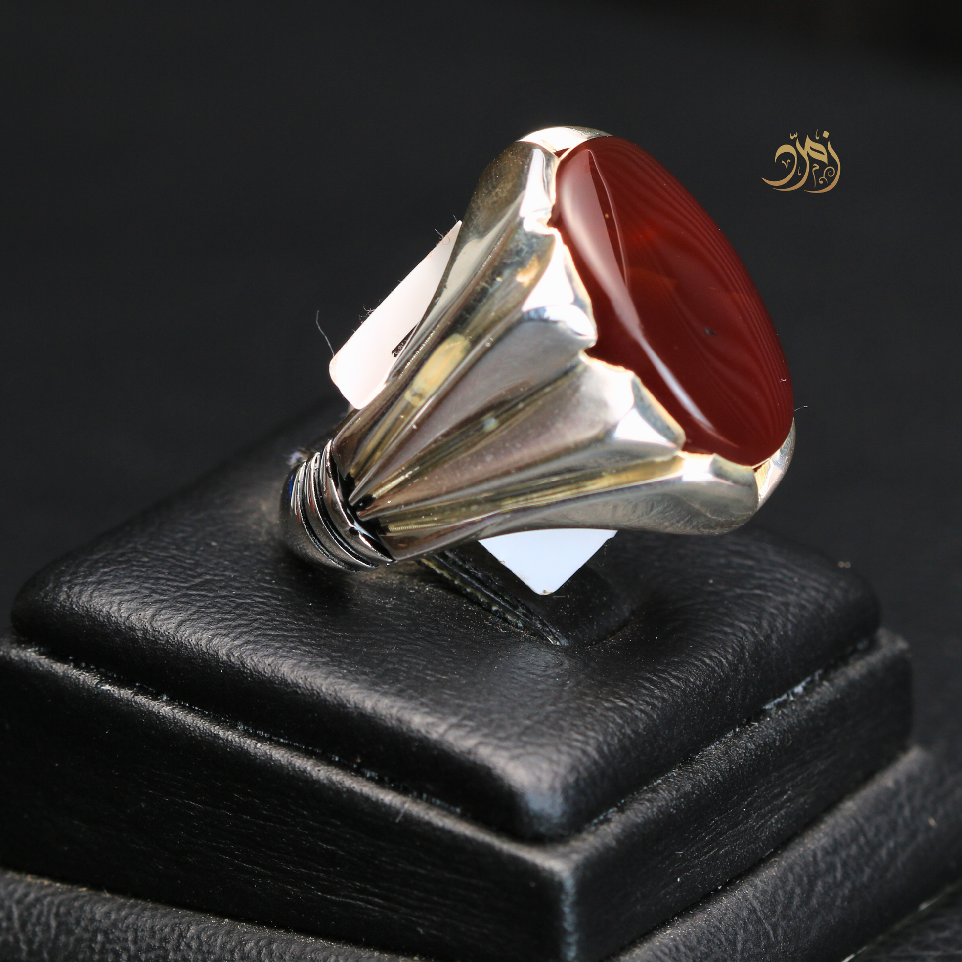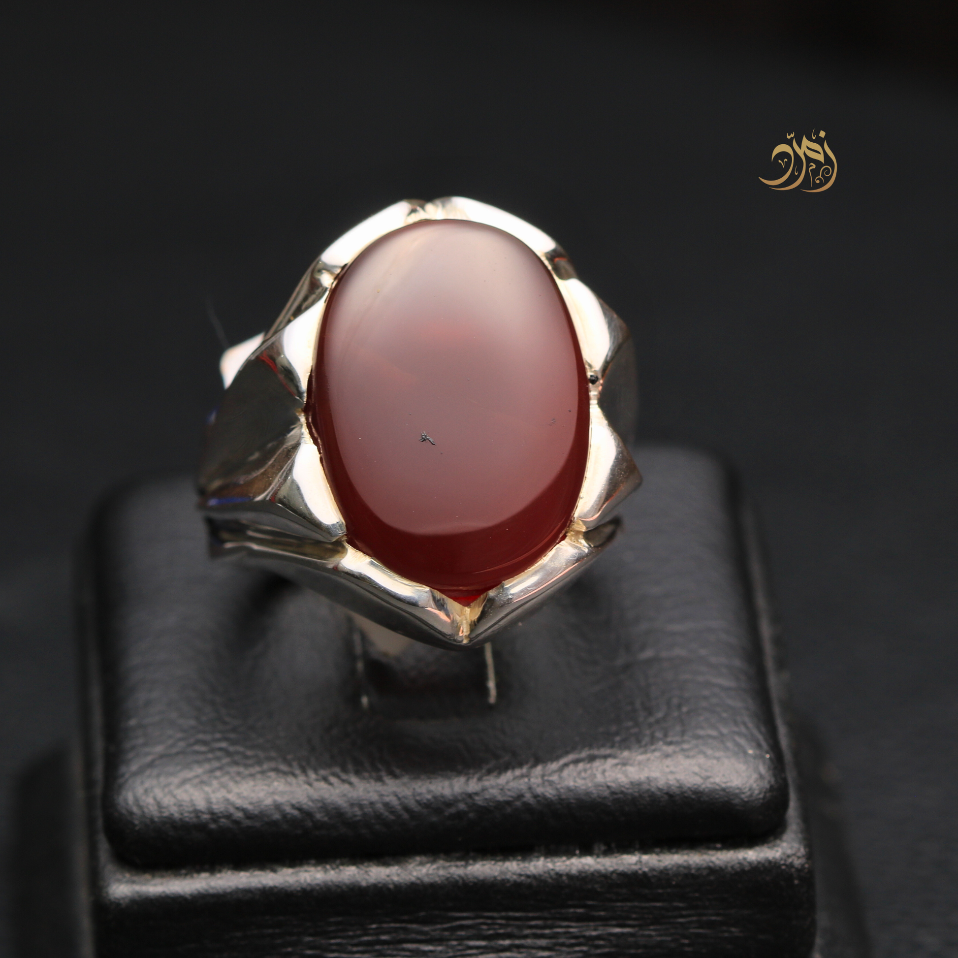 خاتم عقيق يماني كبدي طبيعي صياغة عارف