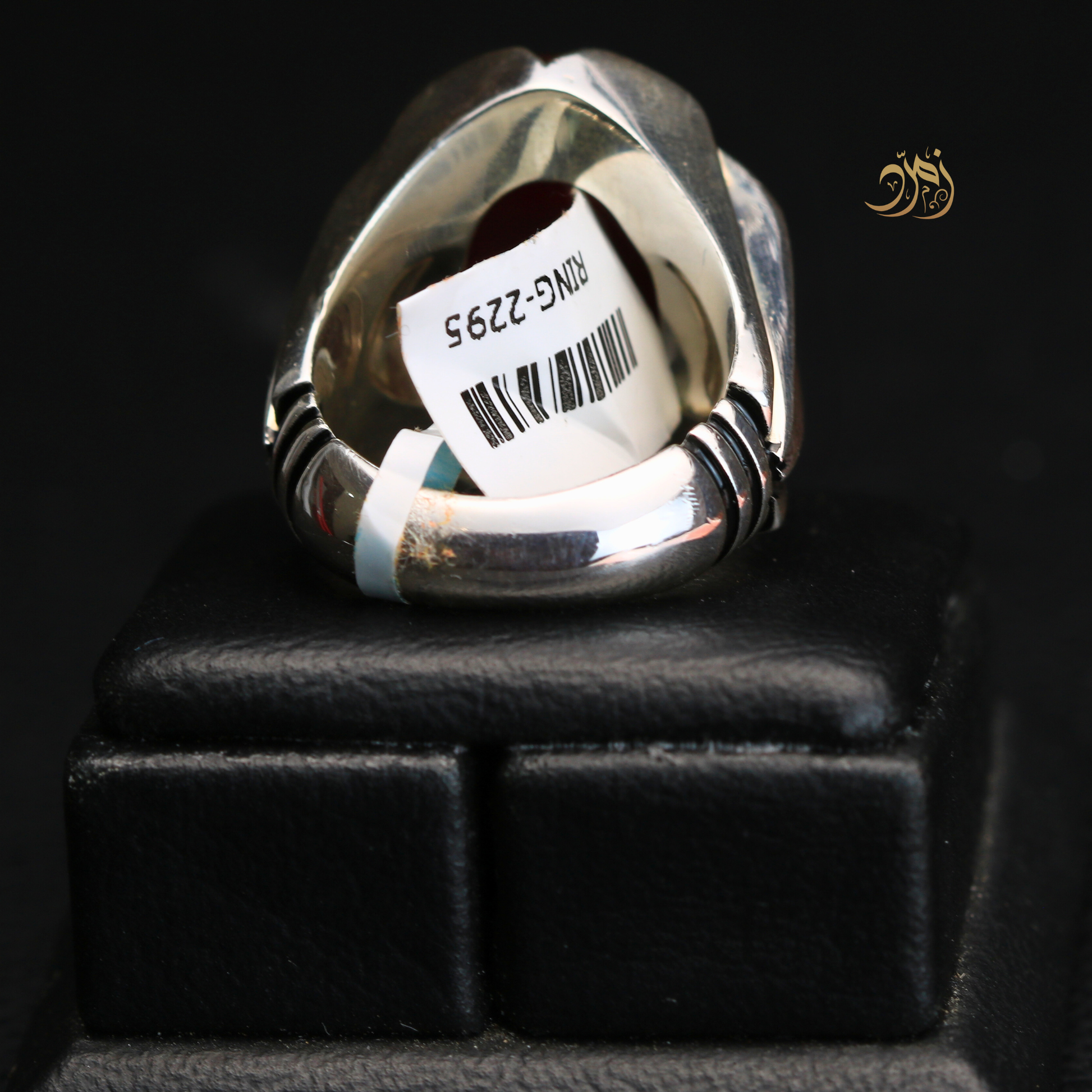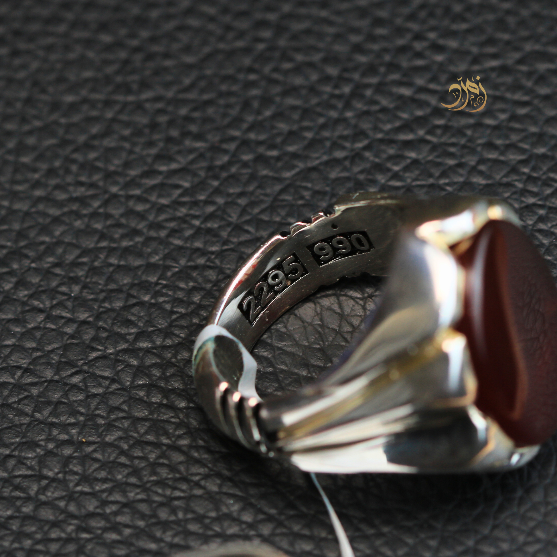 خاتم عقيق يماني كبدي – فضة 990 – صياغة عارف