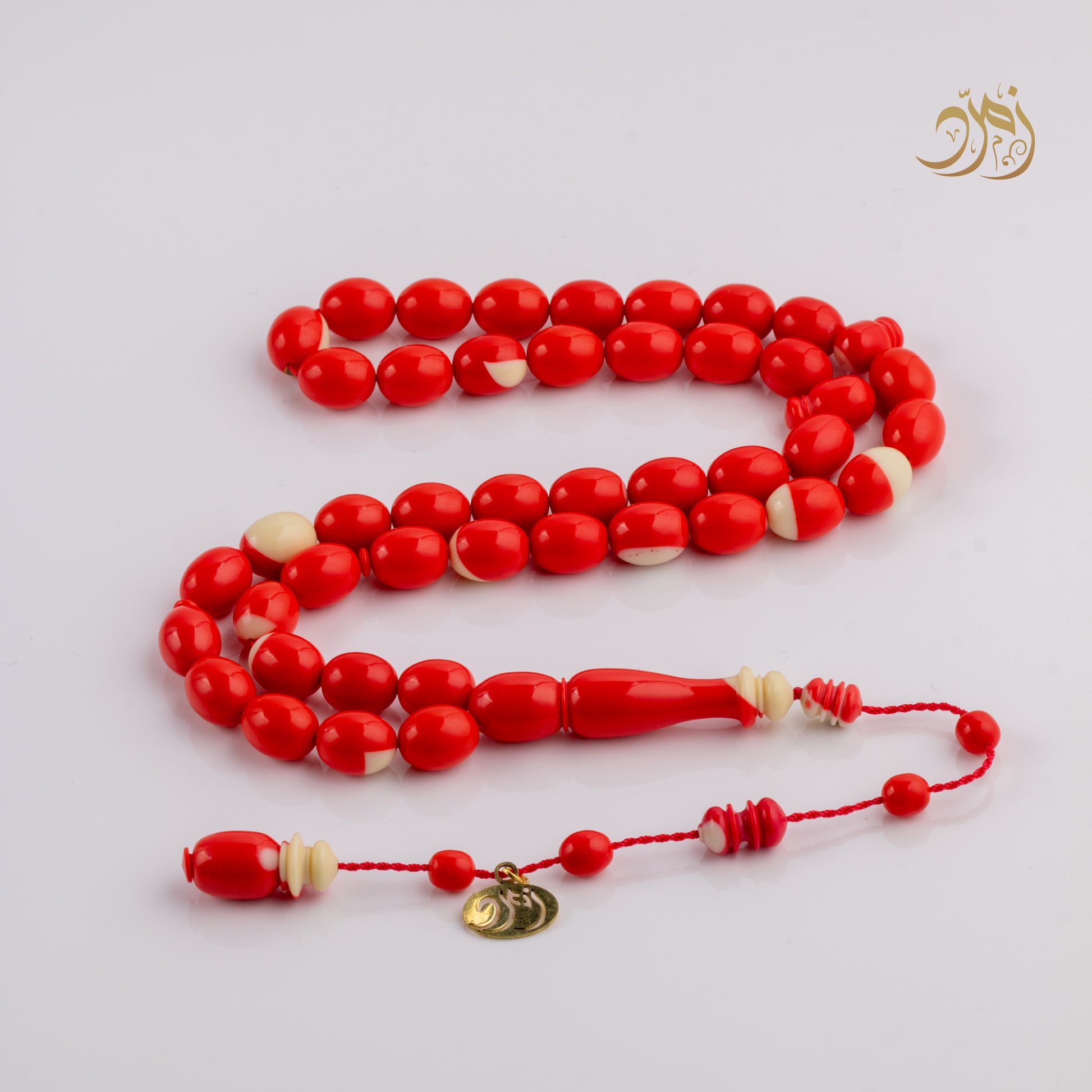 سبحة من طابة بلياردو جديد احمر و ابيض - 43 خرزة - بيض حمام
