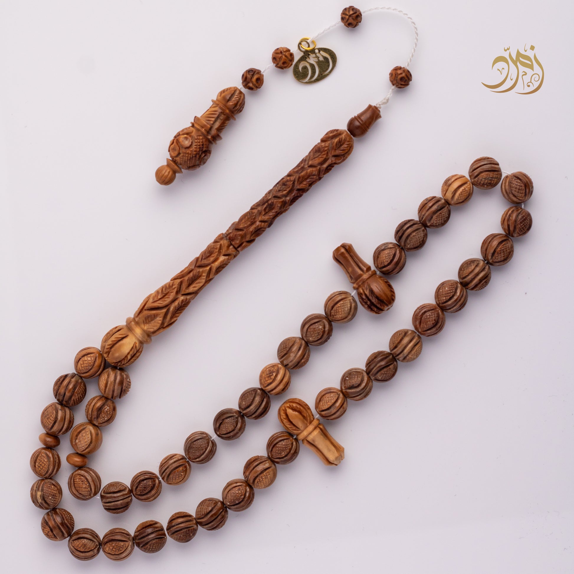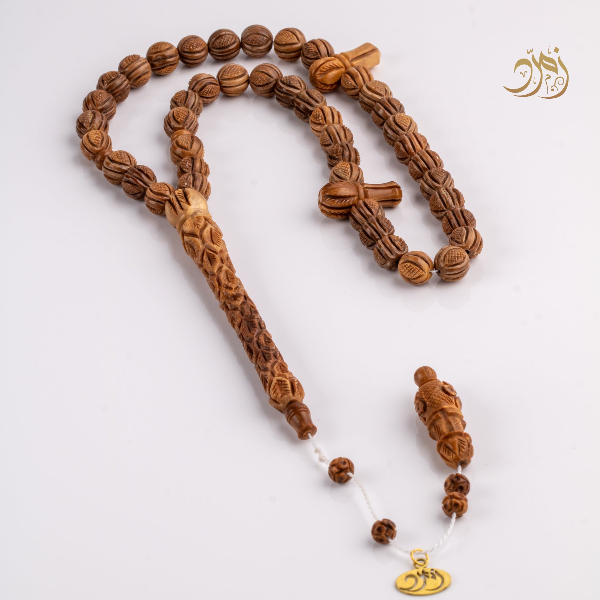 سبحة خشب كوك طبيعي محفورة يدويًا – 43 خرزة