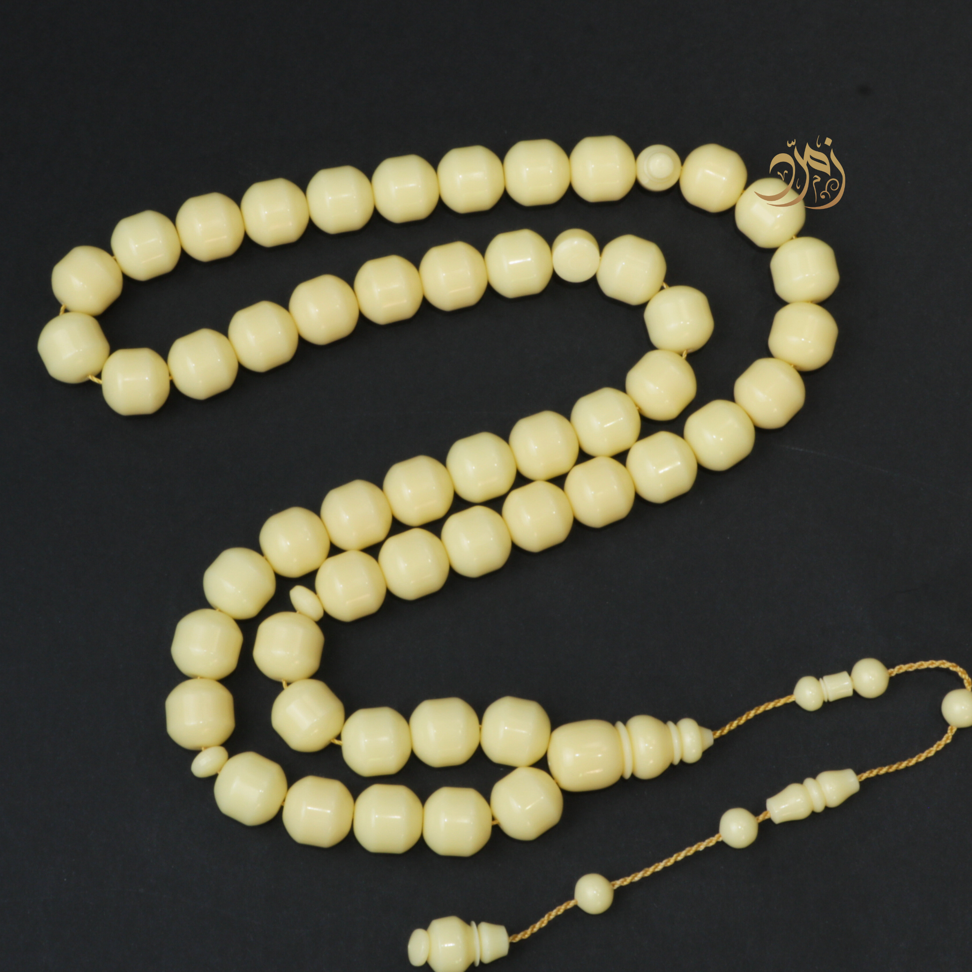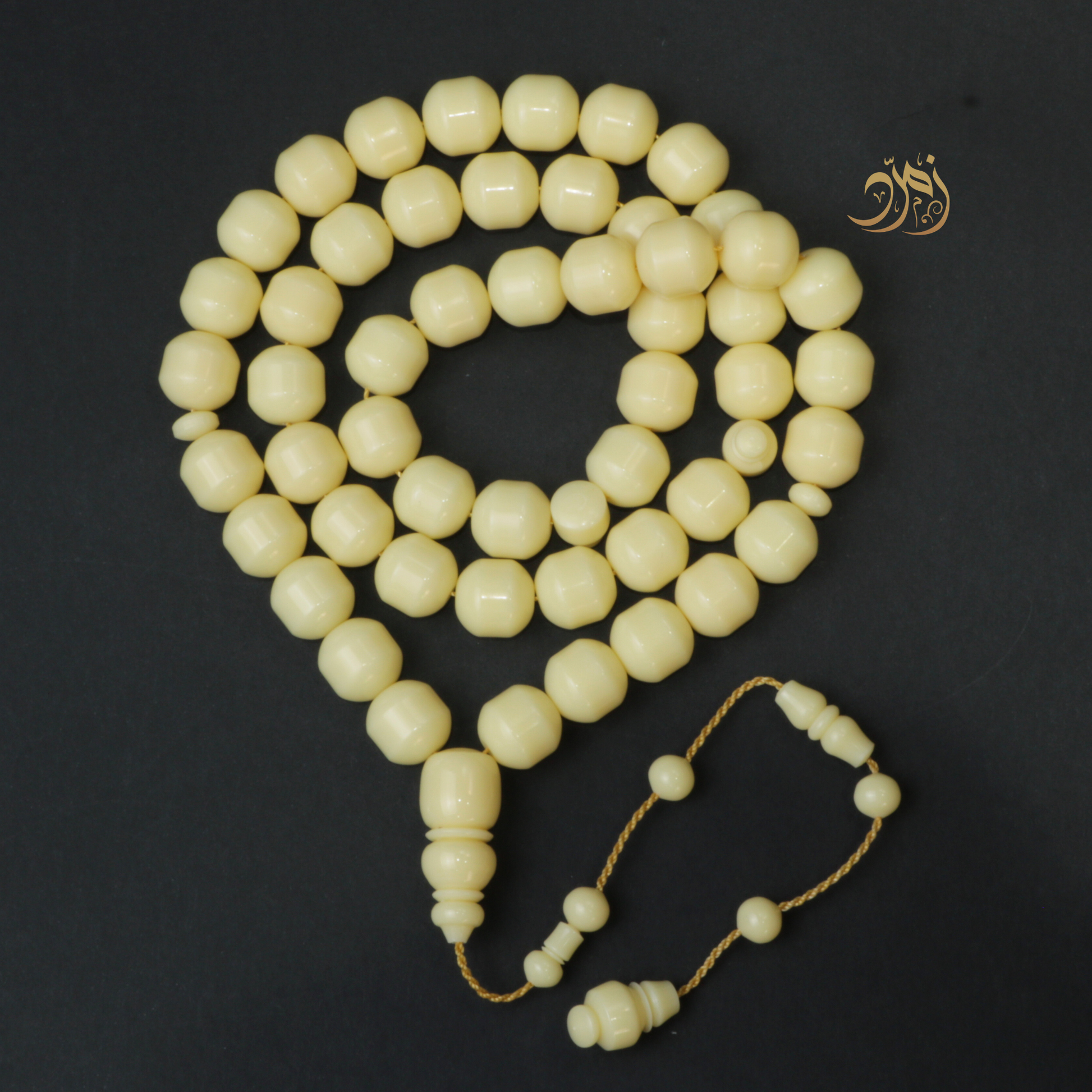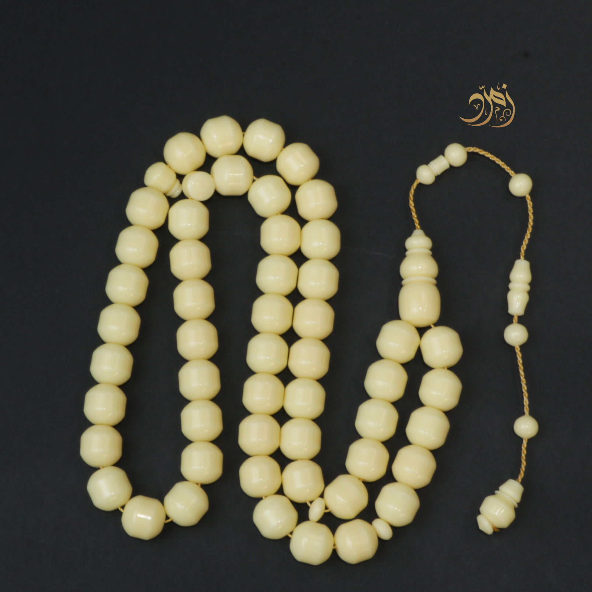 سبحة فاخرة بخامة الدومينو الصب الجديد عالي الكثافة، باللون العاجي الهادئ الذي يمنحها طابعًا راقياً وذوقاً نادراً.