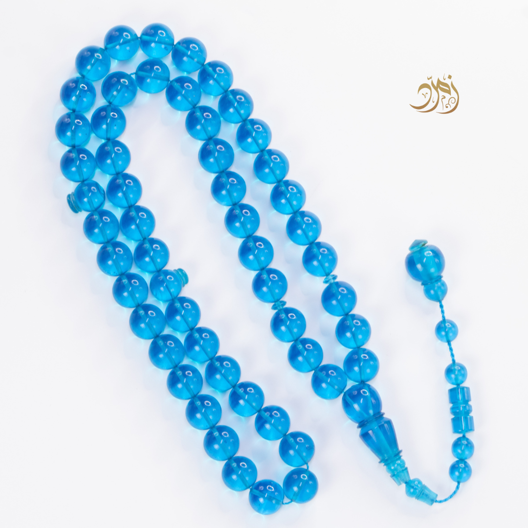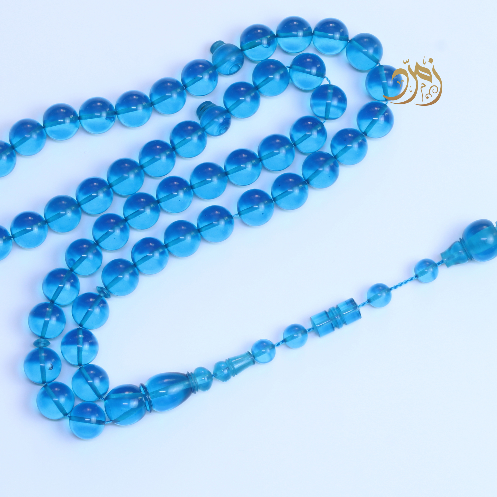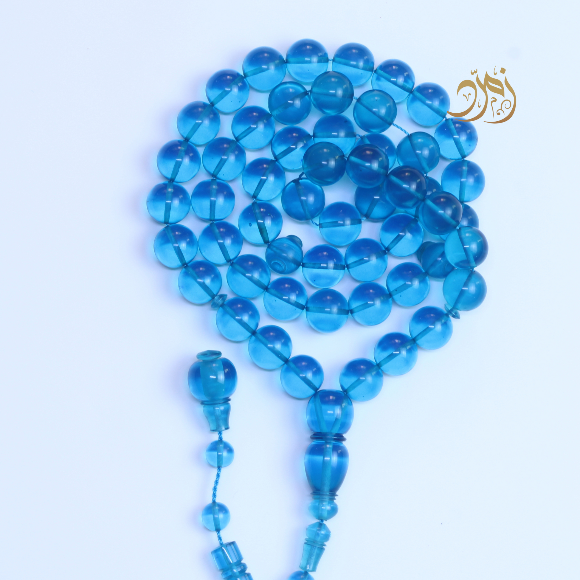 قطعة مميزة بلون تركواز شفاف يعكس صفاء البحر وأناقة التصميم. سبحة تجمع بين البساطة والفخامة، لتكون إضافة فريدة لمجموعتك أو هدية راقية.
