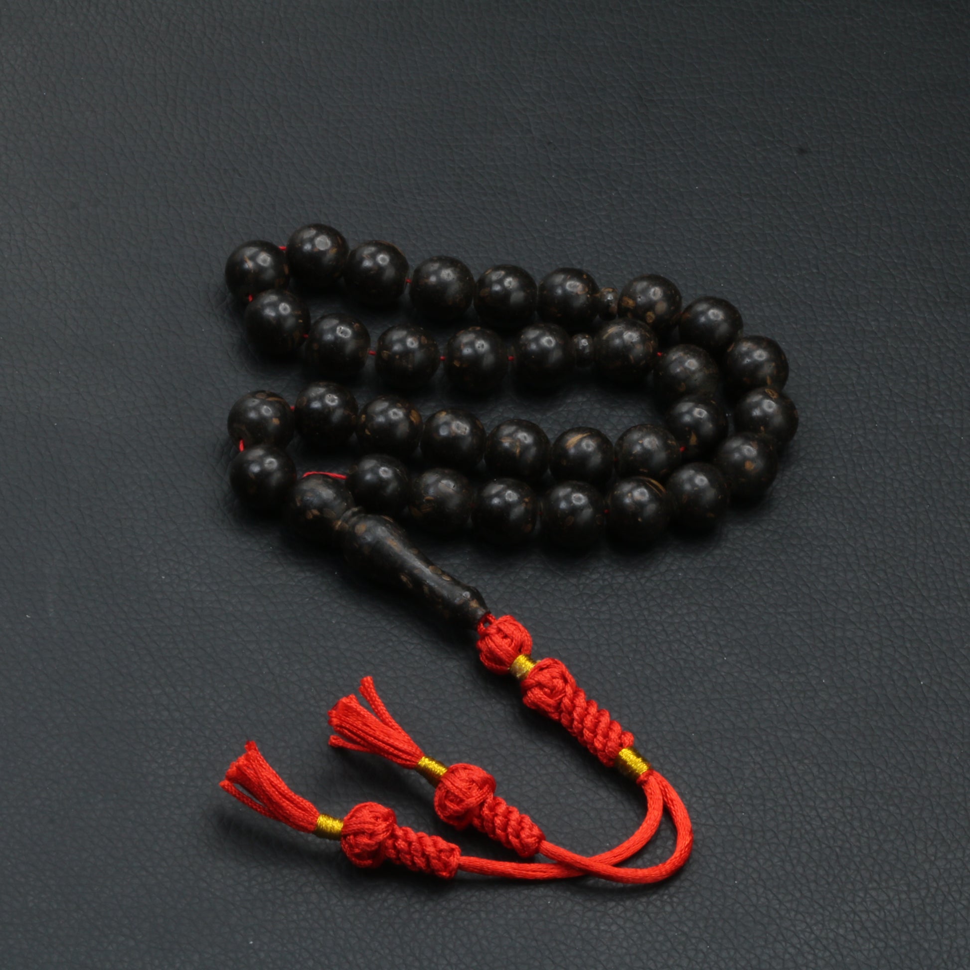 سبحة مميزة مصنوعة من خشب القرنفل الفواح، بلون بني غامق ونمط طبيعي دقيق في كل خرزة.