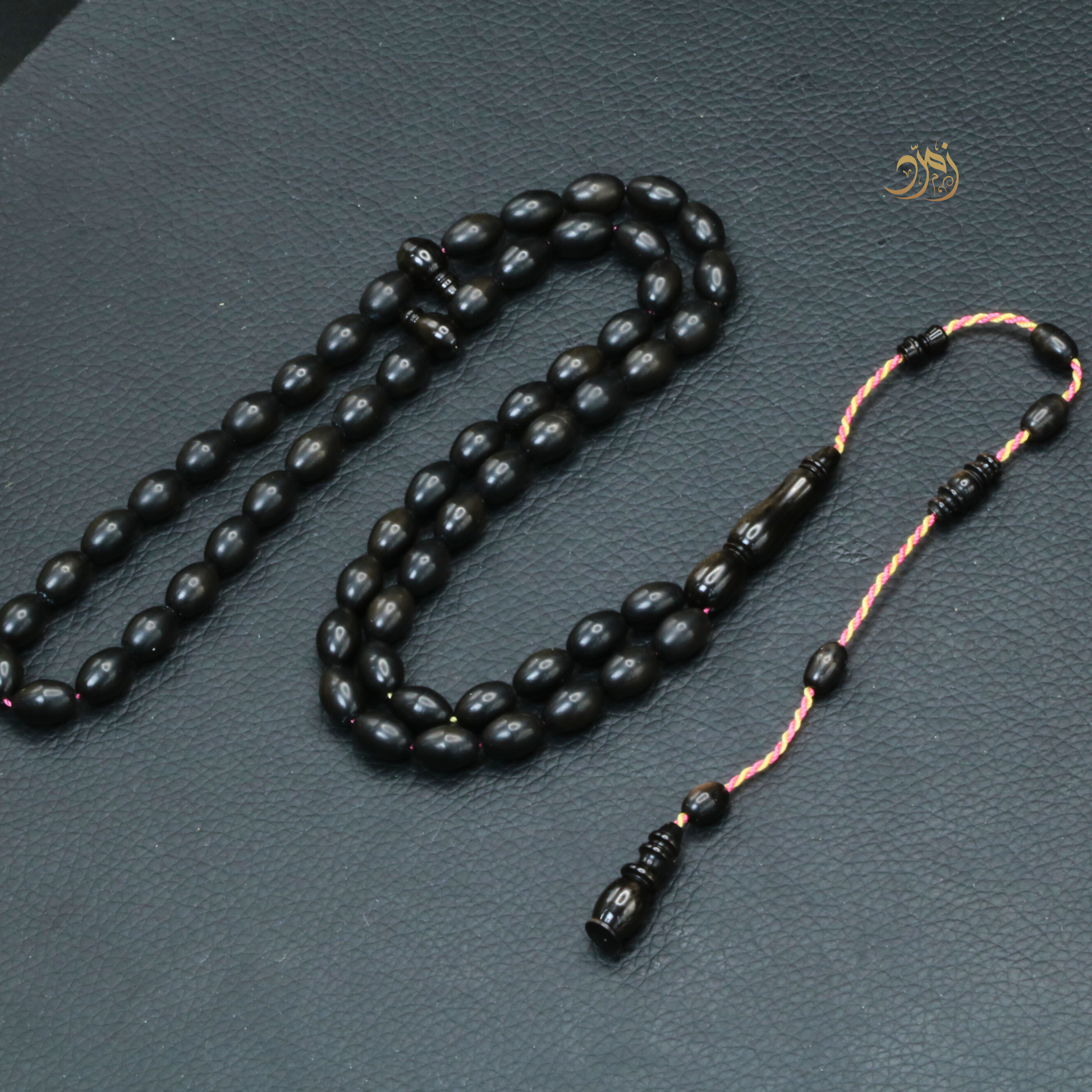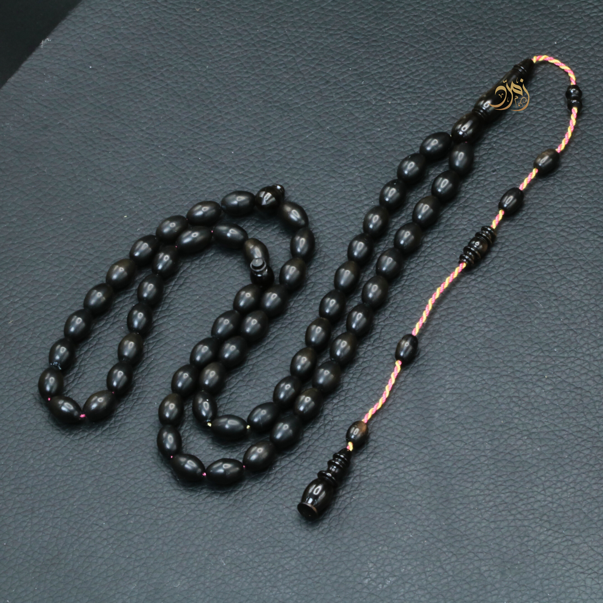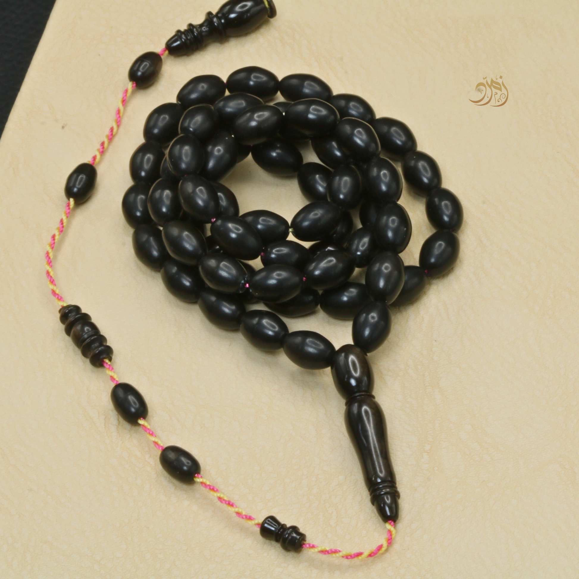 سبحة أنيقة مصنوعة من القلاليث الفرنسي المعروف بجودته وخفته، مكونة من 59 خرزة مصقولة بعناية بشكل زيتوني مريح وسلس في اليد.