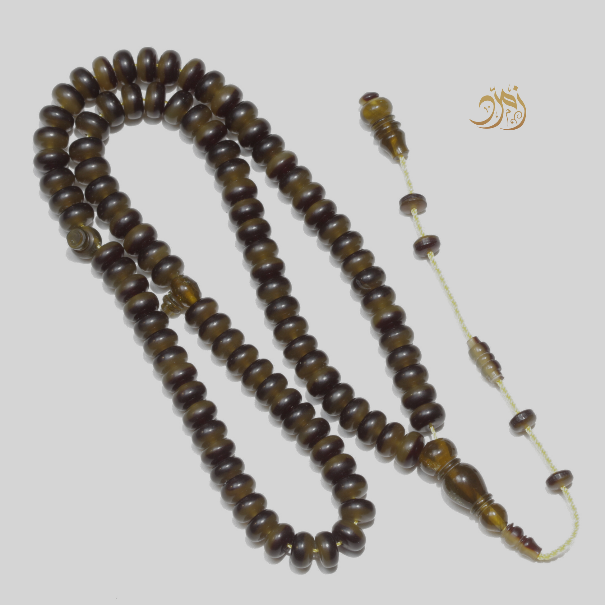 سبحة أنيقة مصنوعة من خامة الجلاليث الفرنسي النادرة، تم خراطتها بعناية فائقة لتُبرز جمال اللون البني الداكن العميق الذي يعكس مظهراً كلاسيكياً فاخراً.