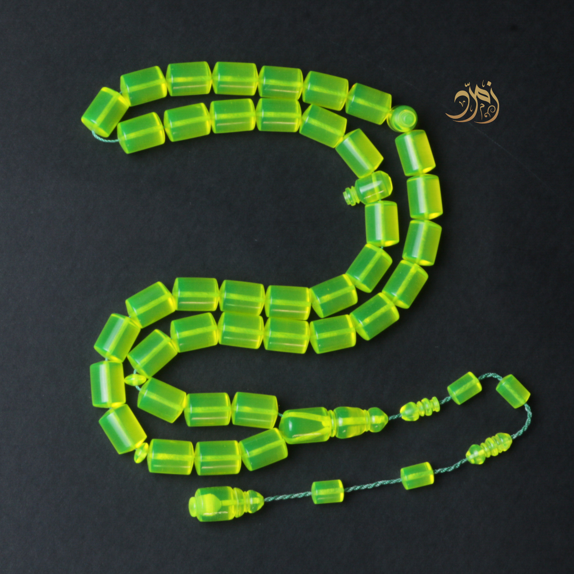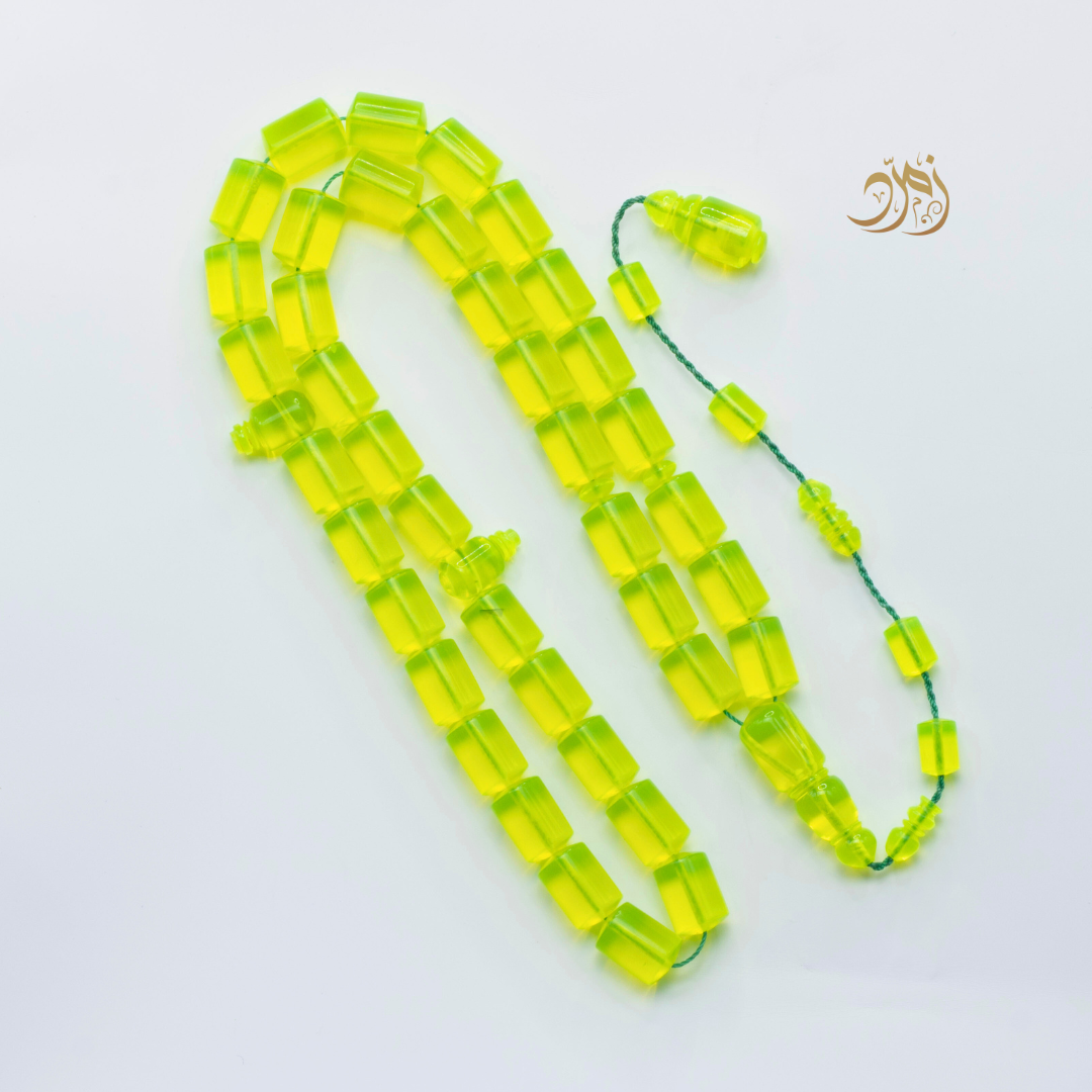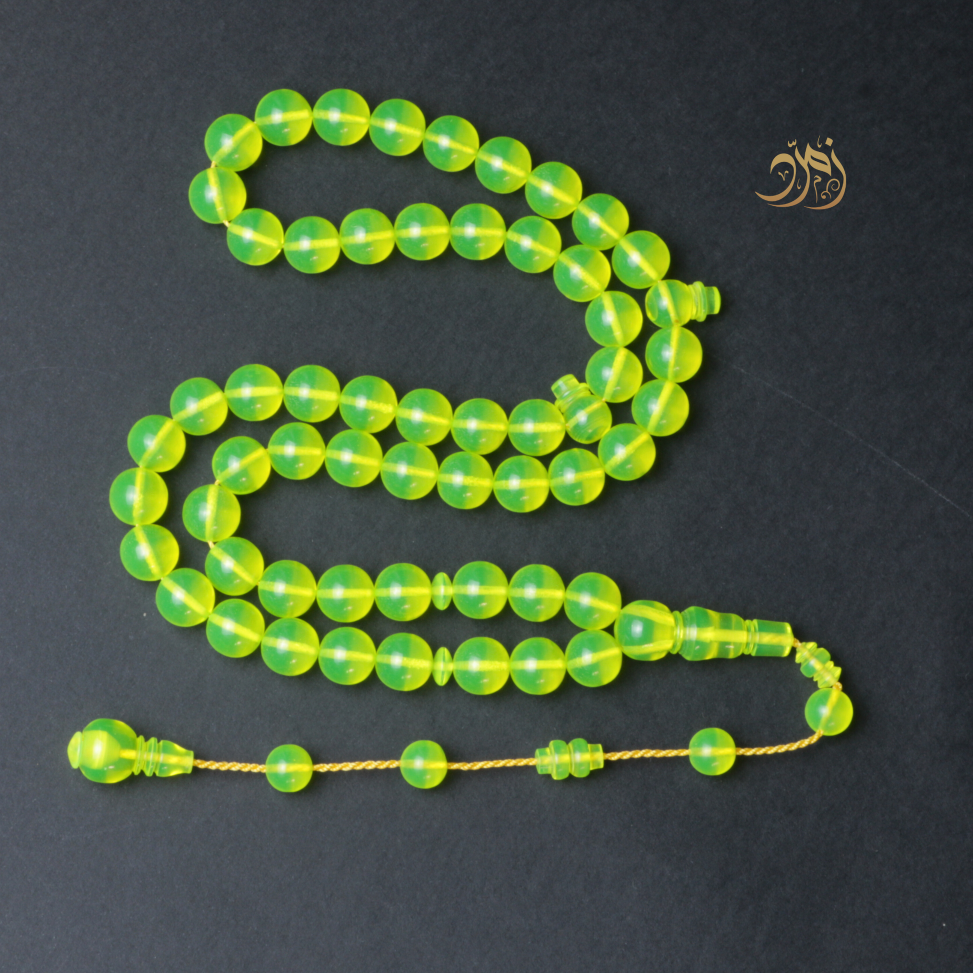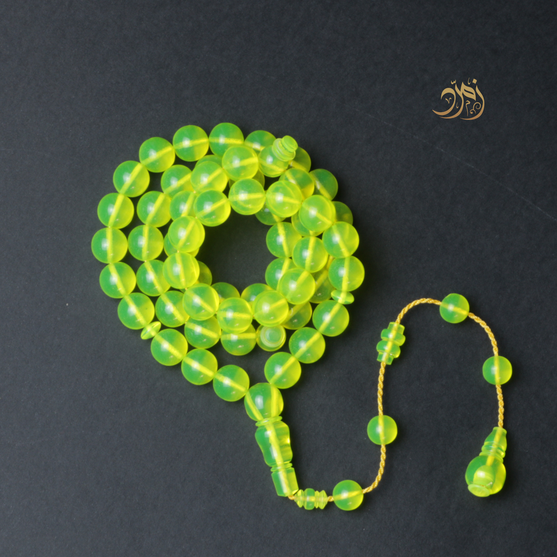 تميّز بسبحة غير تقليدية بلون أخضر فوسفوري شفاف، مصنوعة من خامة الكاست عالية الجودة، بلمعة جذابة ولمسة حديثة وفريدة من نوعها.