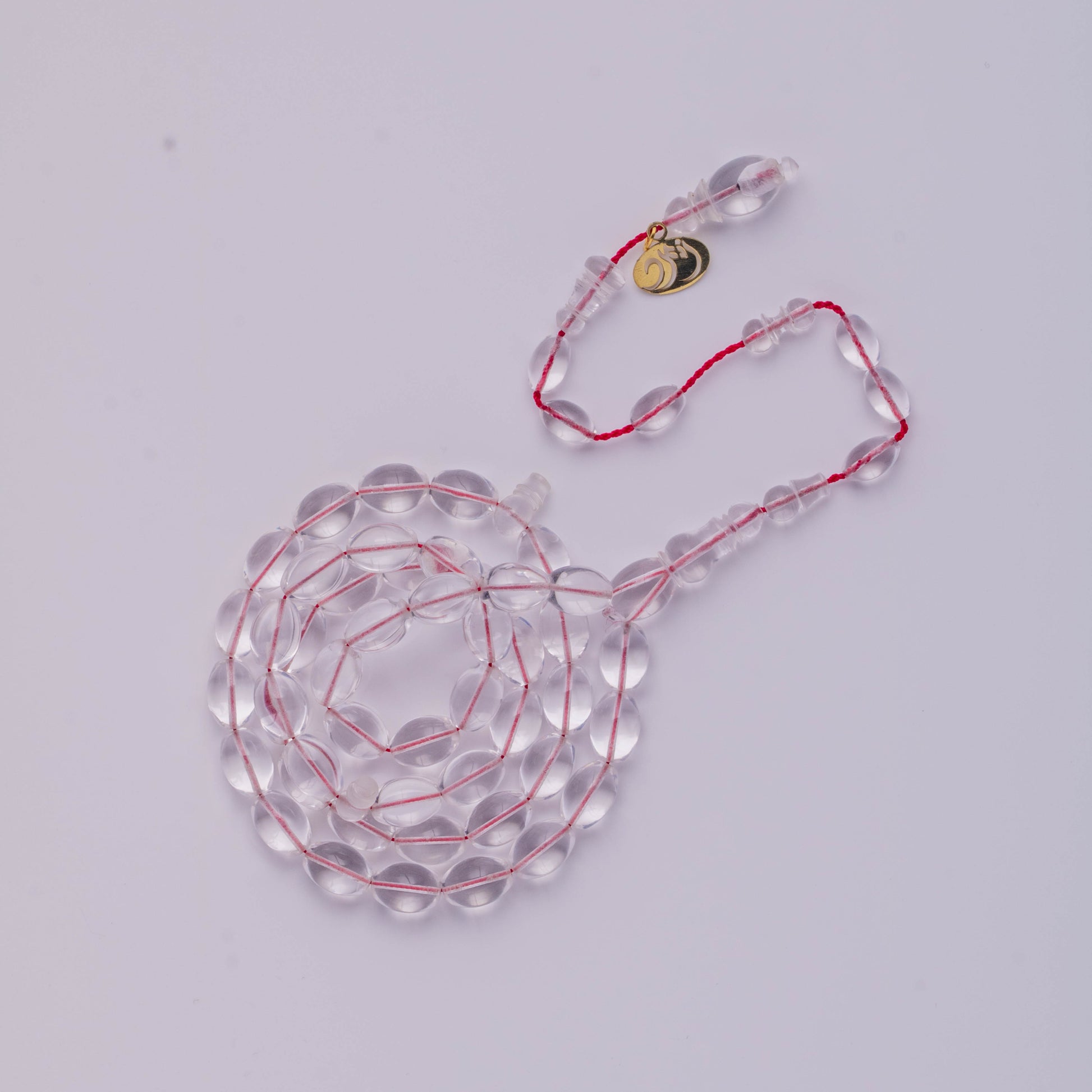 سبحة مميزة مخروطة من خامة الكاست الشفاف عالي الجودة. تتميز بنقائها وشفافيتها الكريستالية الجذابة التي تعكس الضوء بجمال، وتصميمها الأنيق بخرزاتها الزيتونية التي تمنحها انسيابية رائعة في اليد. خراطة يدوية مخصصة لعلامة زمرد. قطعة عصرية وراقية تناسب الاستخدام اليومي وتُعد خياراً رائعاً ومميزاً للإهداء.