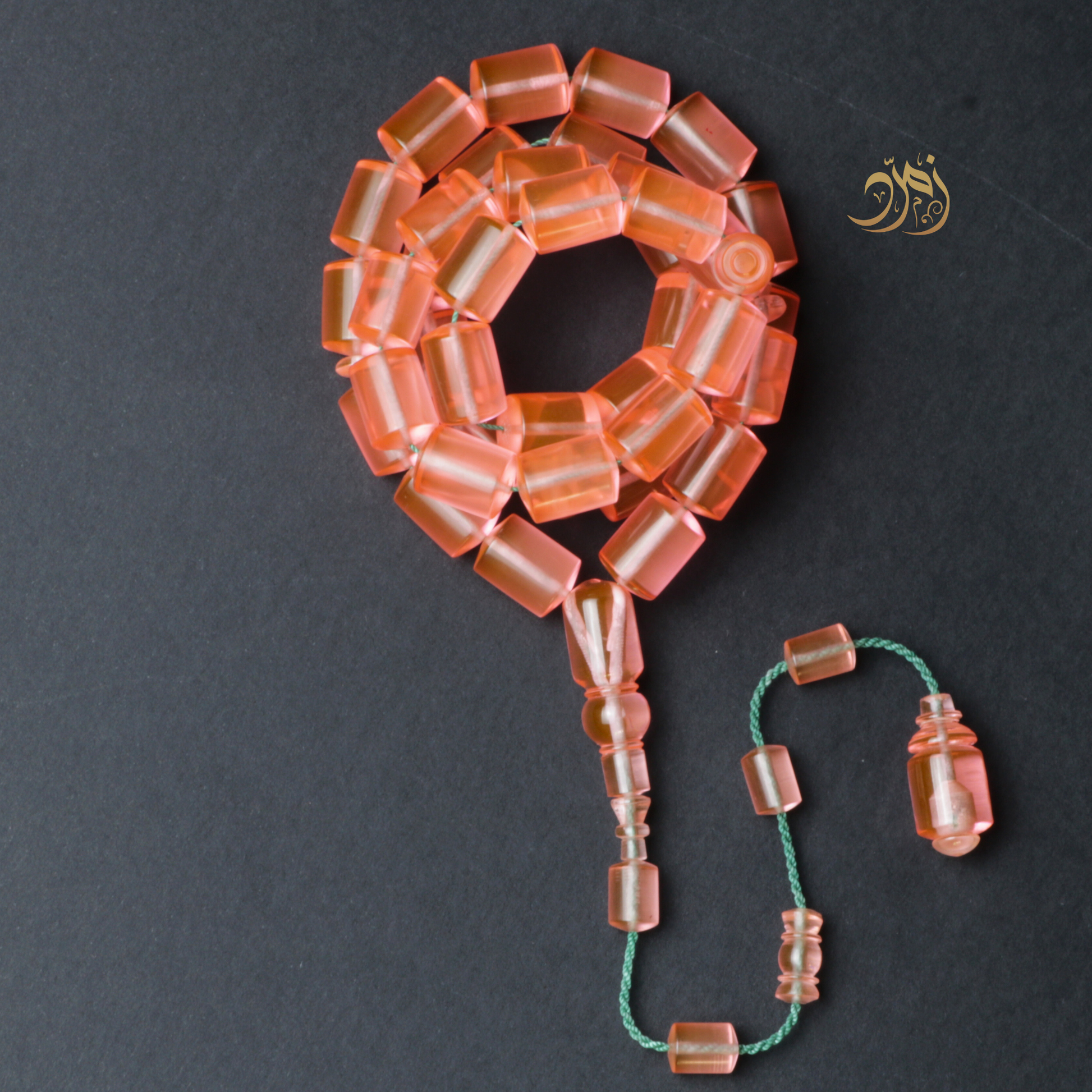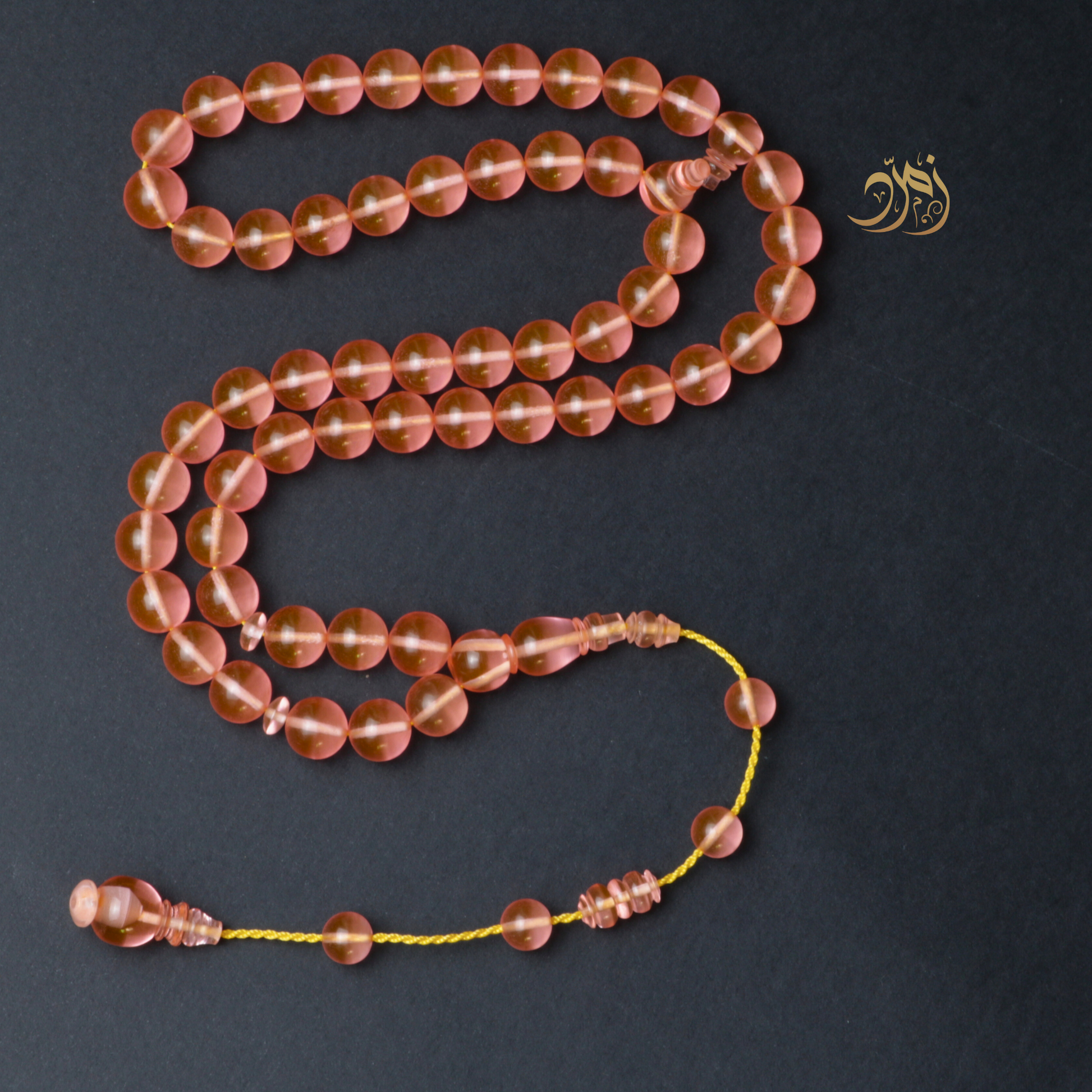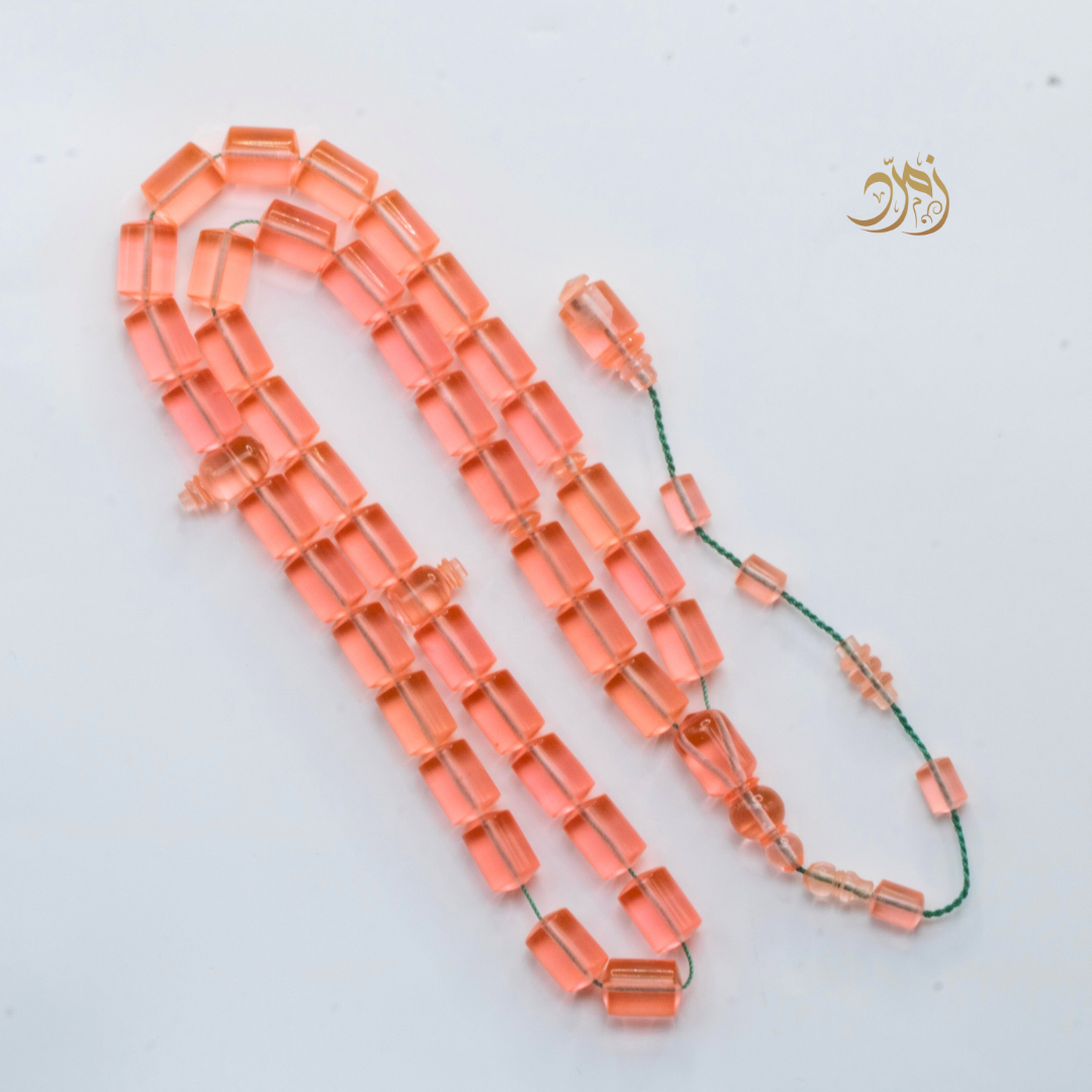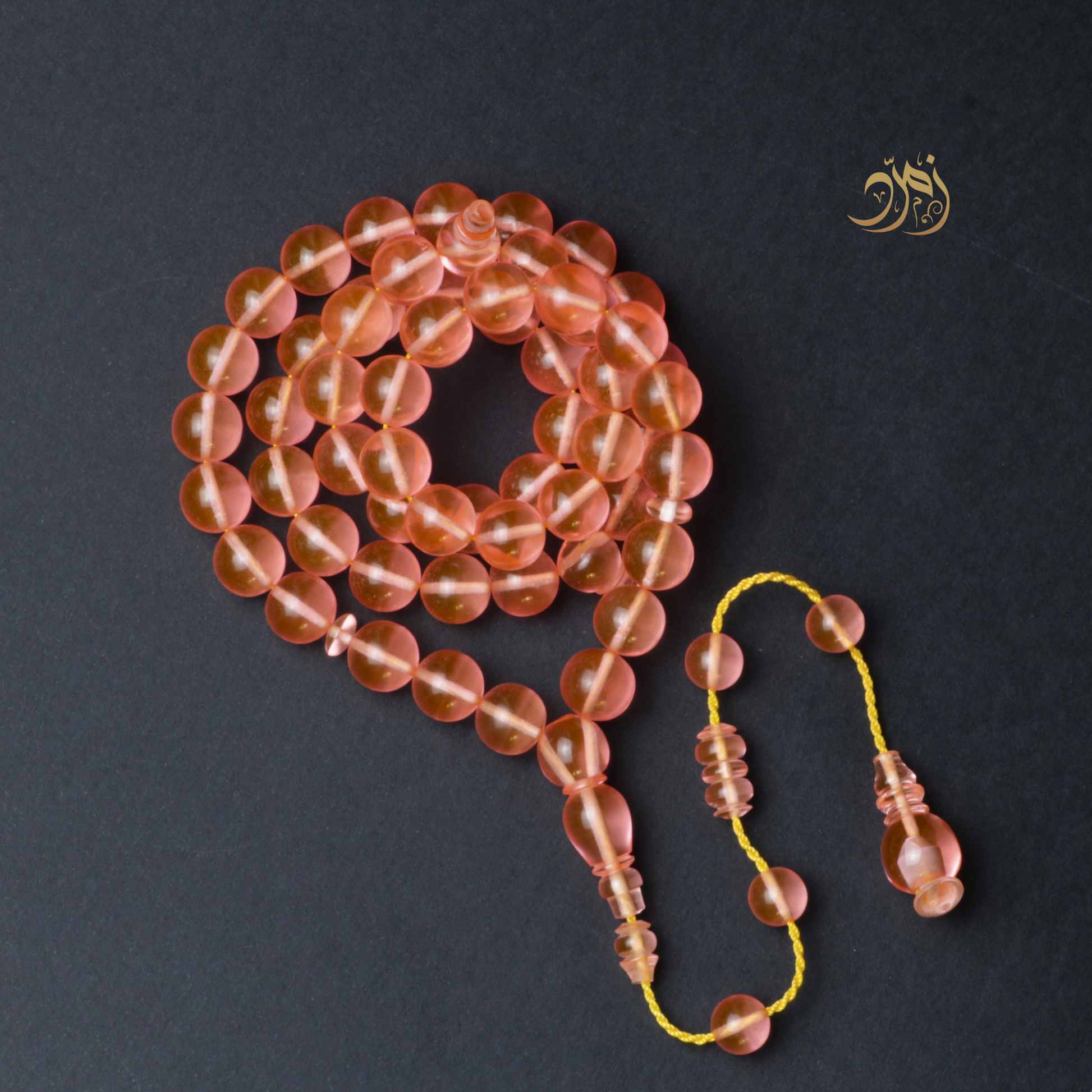 تميّز بسبحة غير تقليدية بلون مشمشي شفاف، مصنوعة من خامة الكاست عالية الجودة، بلمعة جذابة ولمسة حديثة وفريدة من نوعها.