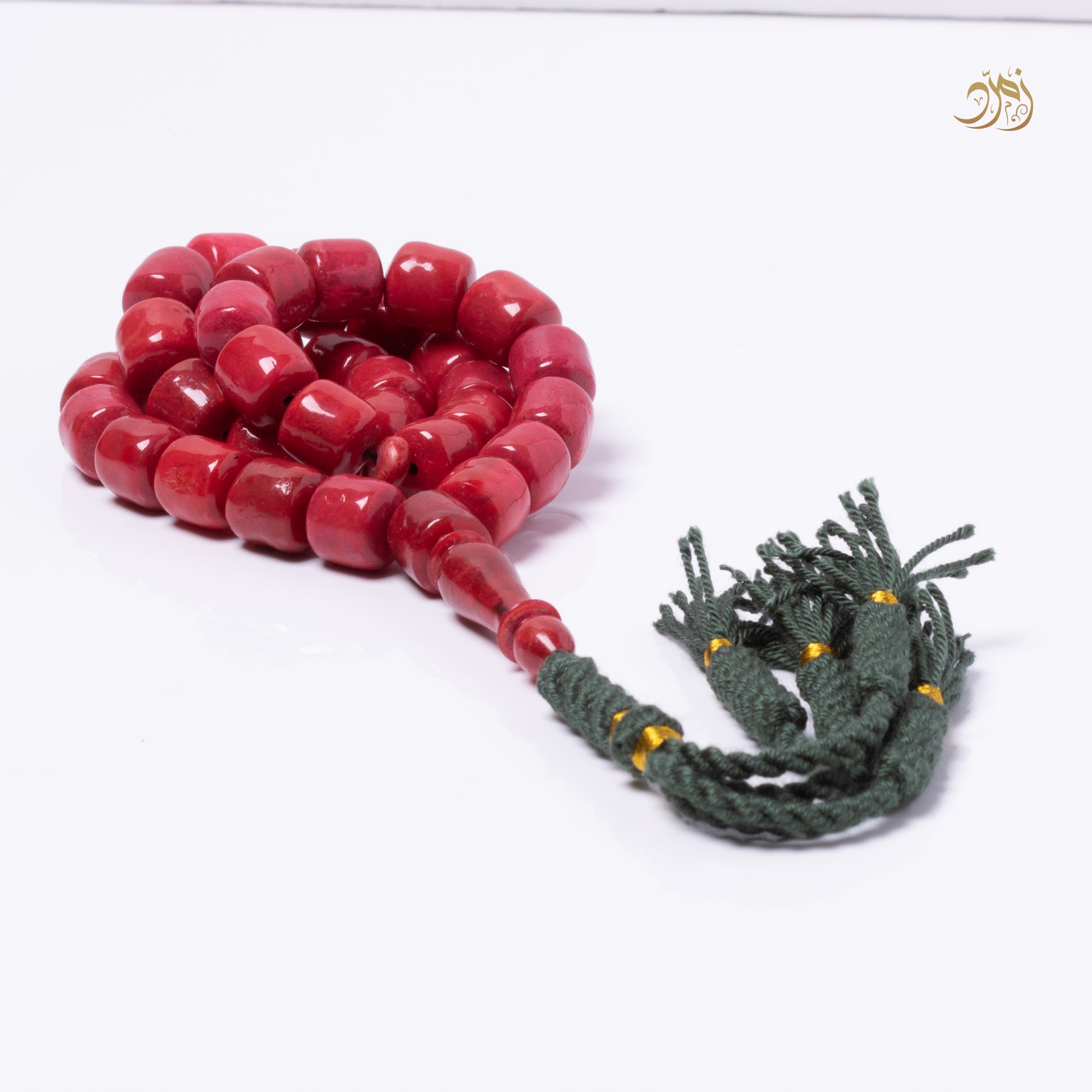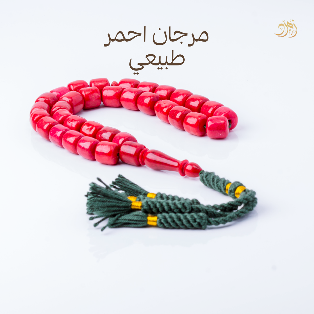 سبحة مرجان أحمر طبيعي 33 خرزة صندوقي
