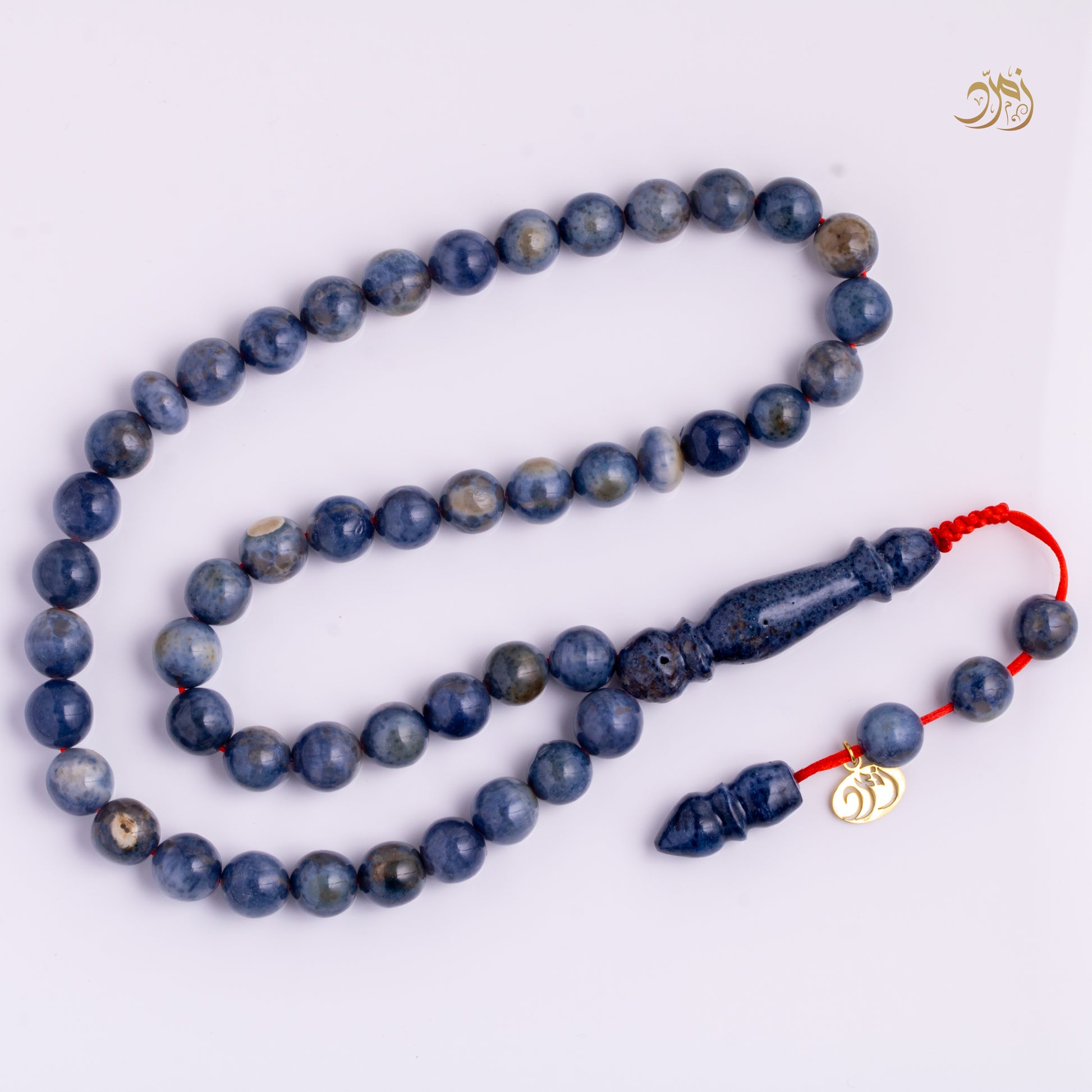 سبحة فاخرة مخروطة من خامة المرجان الأزرق الطبيعي. تتميز بجمال الخامة الطبيعية وتداخل ألوانها الفريد وملمسها المصقول. خراطة يدوية مخصصة لعلامة زمرد. مناسبة للاقتناء المميز وتُعد خياراً راقياً للإهداء.