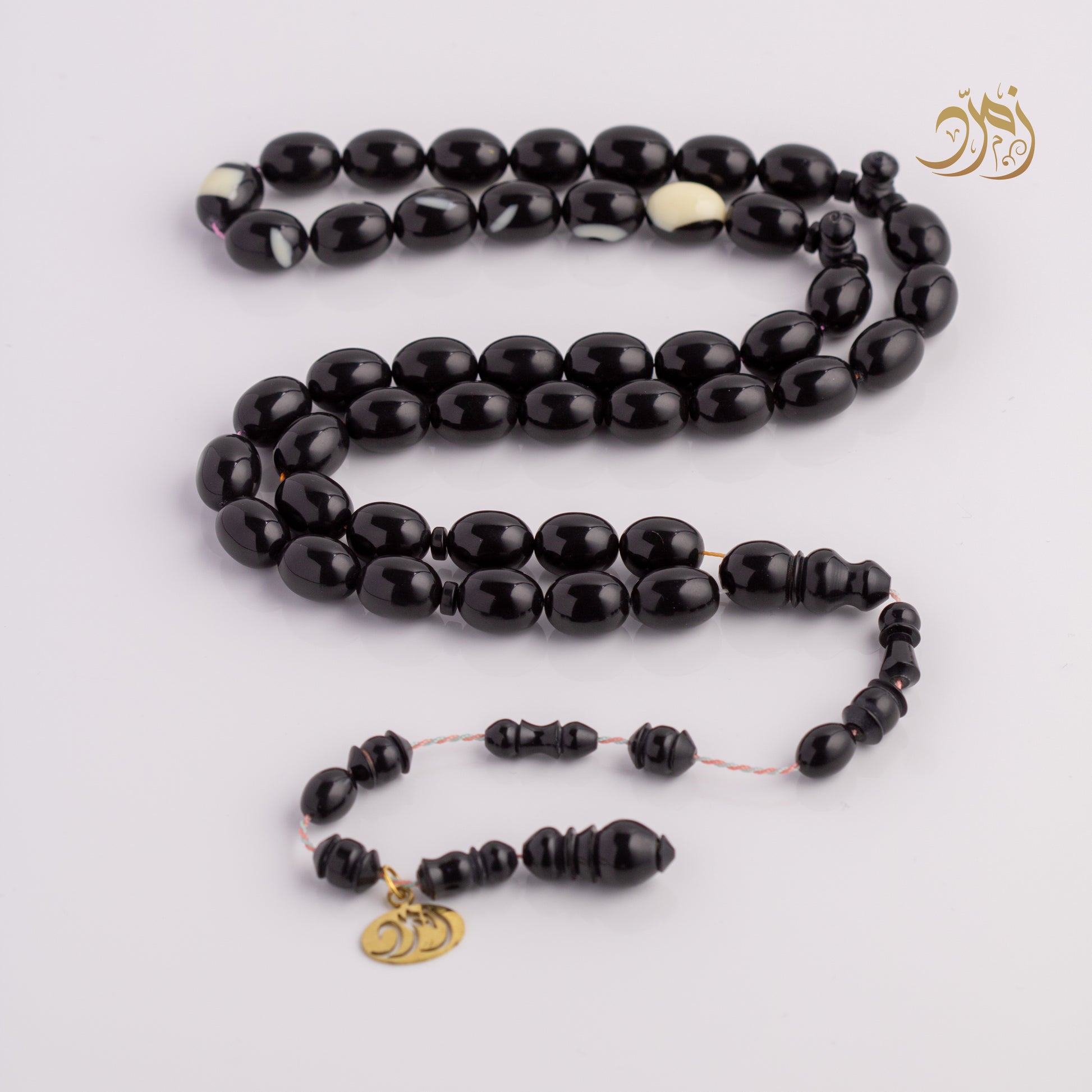سبحة من طابة بلياردو جديد اسود + شاهد سبير – 45 خرزة بيض حمام